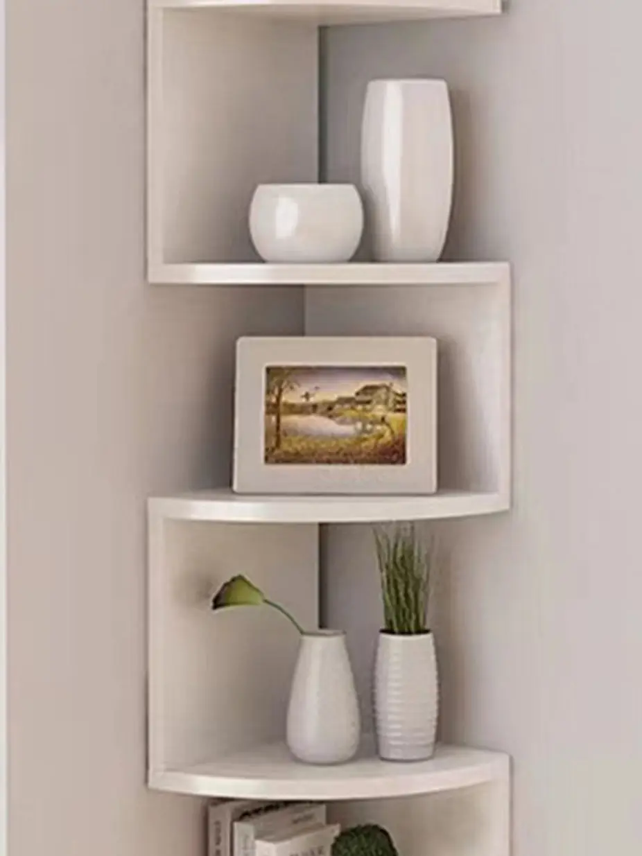 Corner Shelf Wall Mount Floating Wall Shelf White Corner Bookshelf, Plant Wall Shelf for Bedroom, Living Room, Bathroom, Office