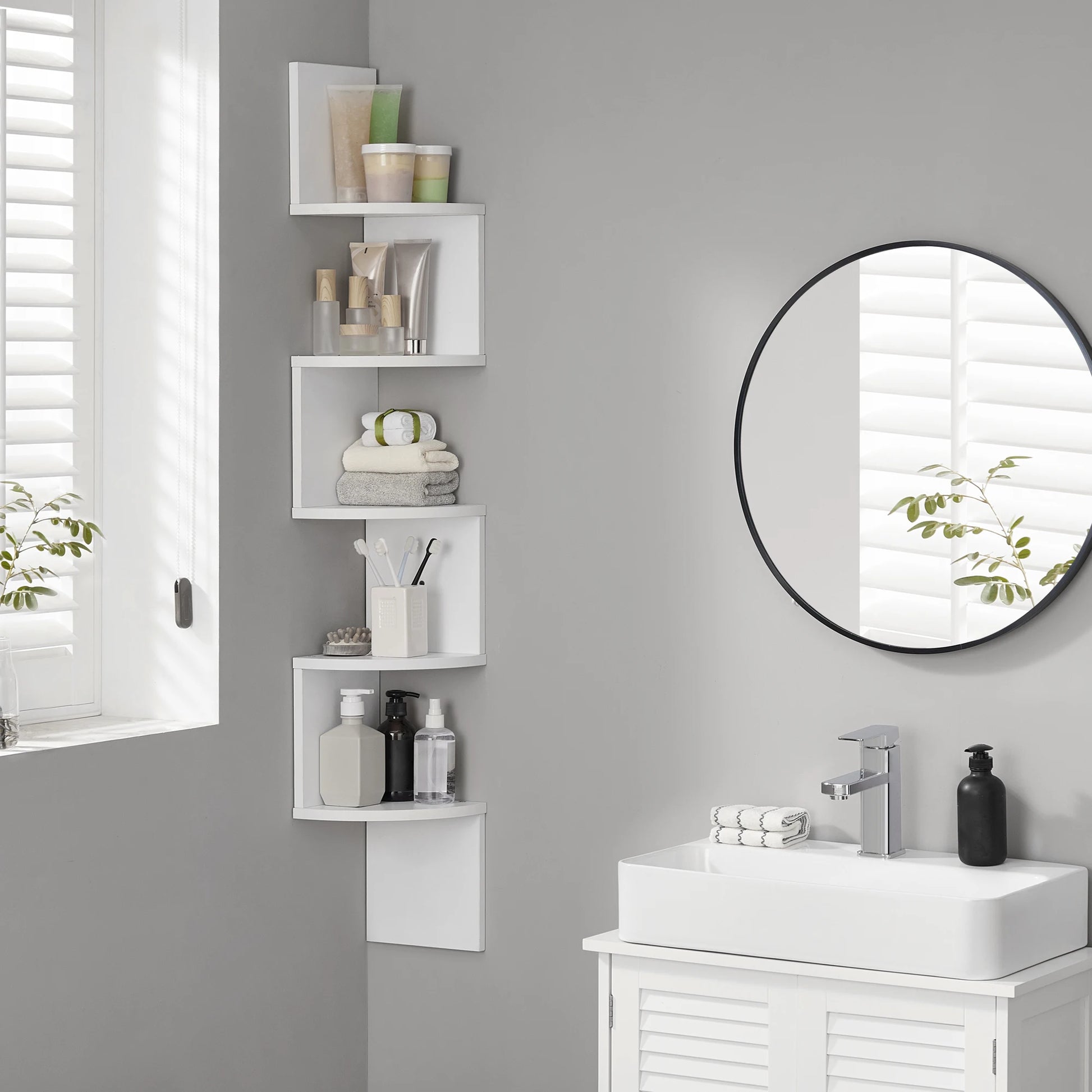Maximized style, minimized footprint. The Store Open™ 5-Tier Floating Corner Shelf is the ultimate space-saving solution for modern homes. Featuring a unique zigzag silhouette and a sleek white finish, this wall-mounted unit transforms any neglected corner into a stunning display for your favorite books, small indoor plants, or decorative treasures. Whether it's your home office or a cozy bathroom, this shelf brings a touch of minimalist elegance to every wall.