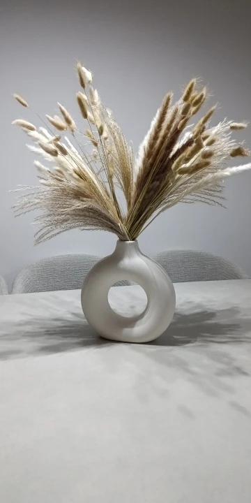 Redefine your home aesthetic with the Store Open™ Nordic Irregular Ceramic Vase. Inspired by fluid lines and organic movement, this sculptural masterpiece is more than just a vase—it is a work of art. Its unique, asymmetrical silhouette brings a sophisticated and calm vibe to any modern interior, making it the perfect home for your favorite pampas grass or dried florals.
